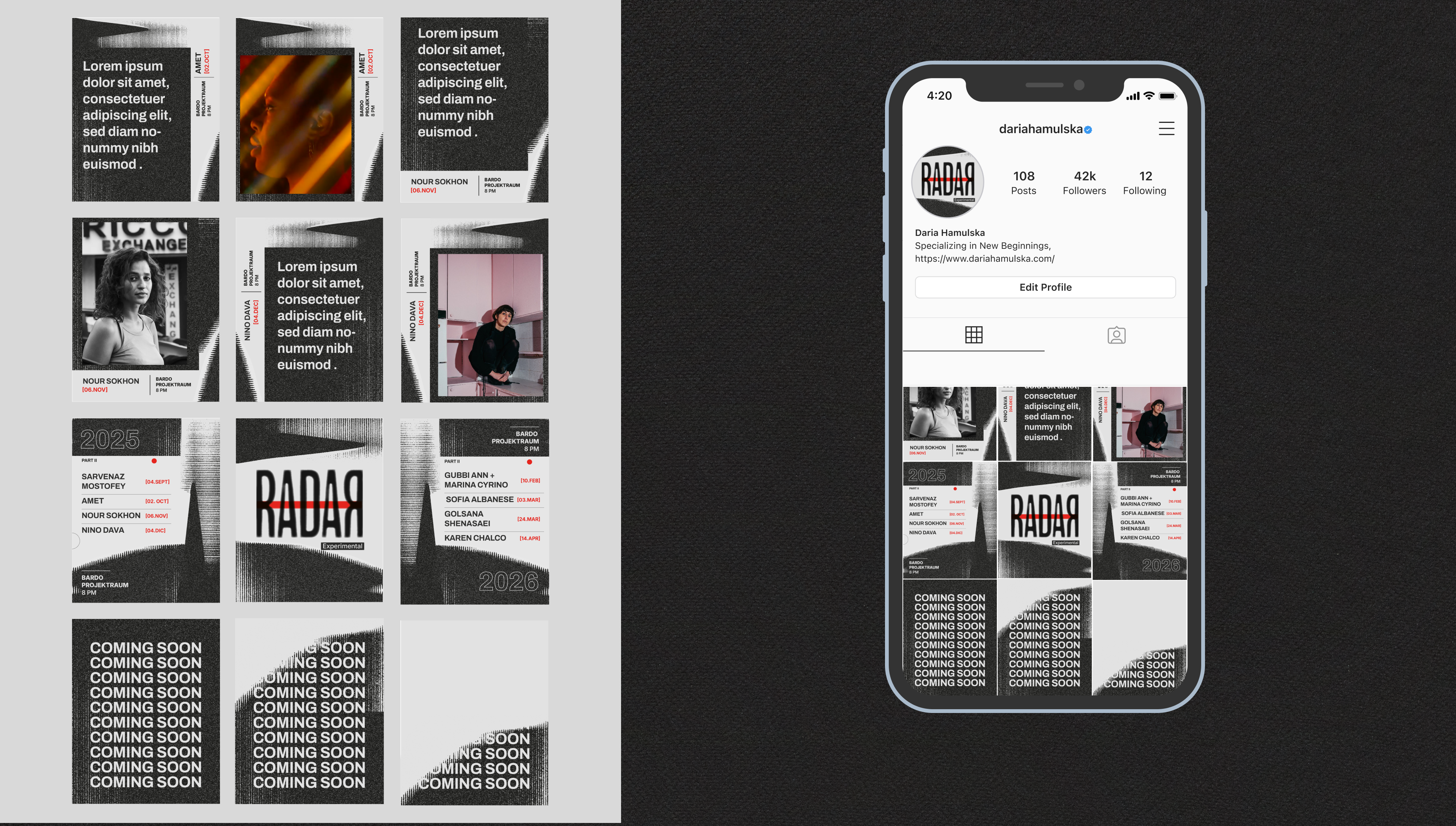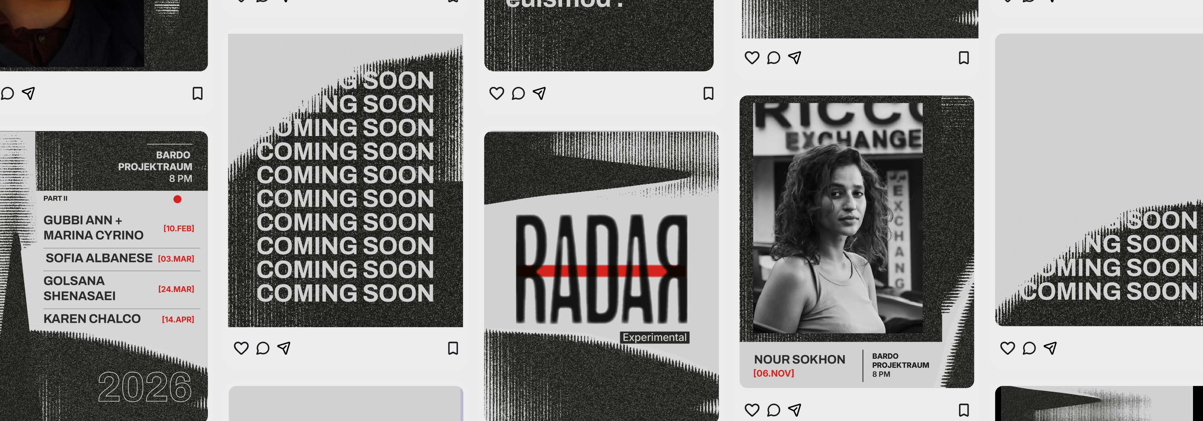 A visual identity created for RADAR, an experimental music festival in Berlin dedicated to FLINTA artists working across sound, performance, and electronic practices.