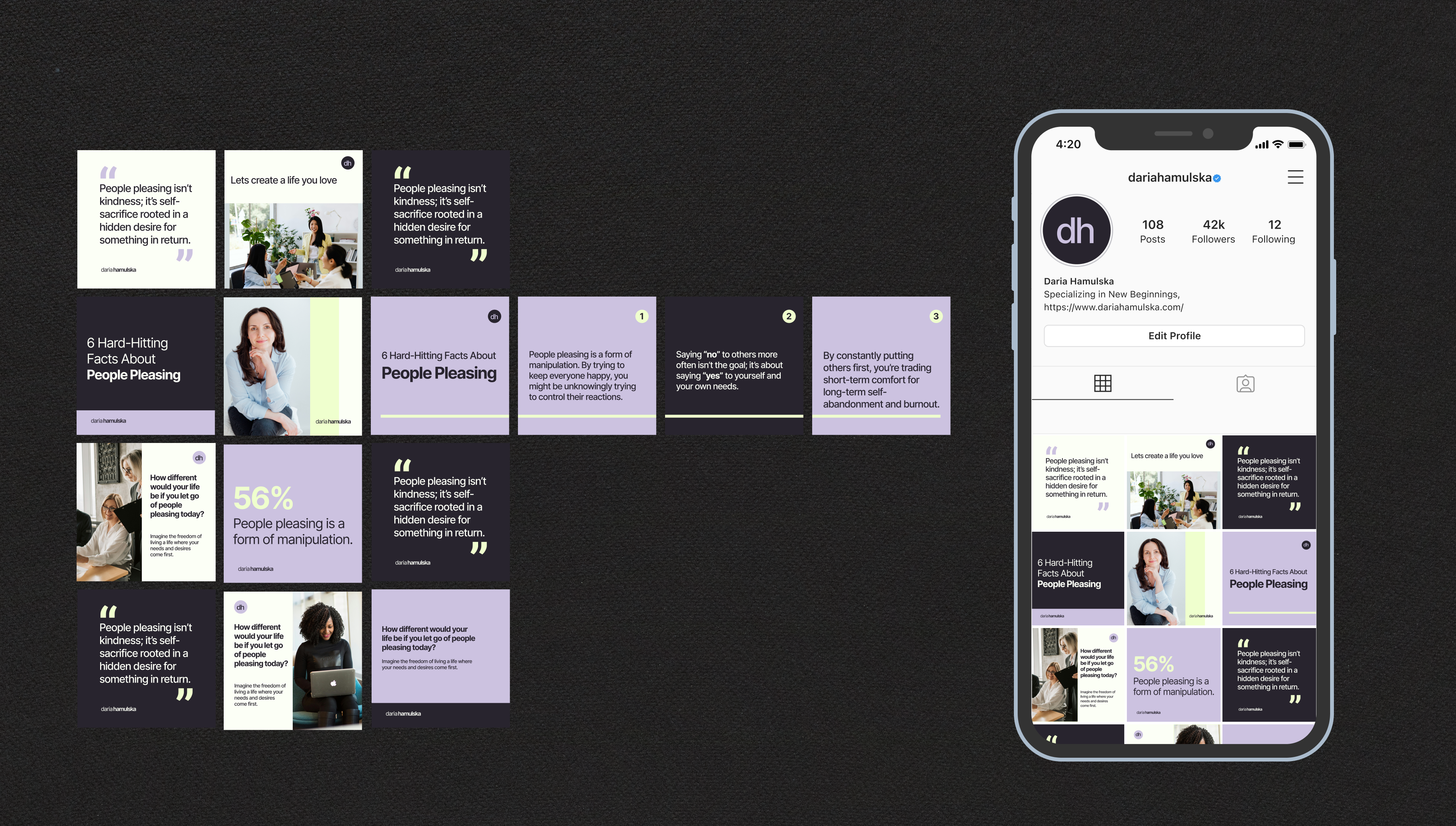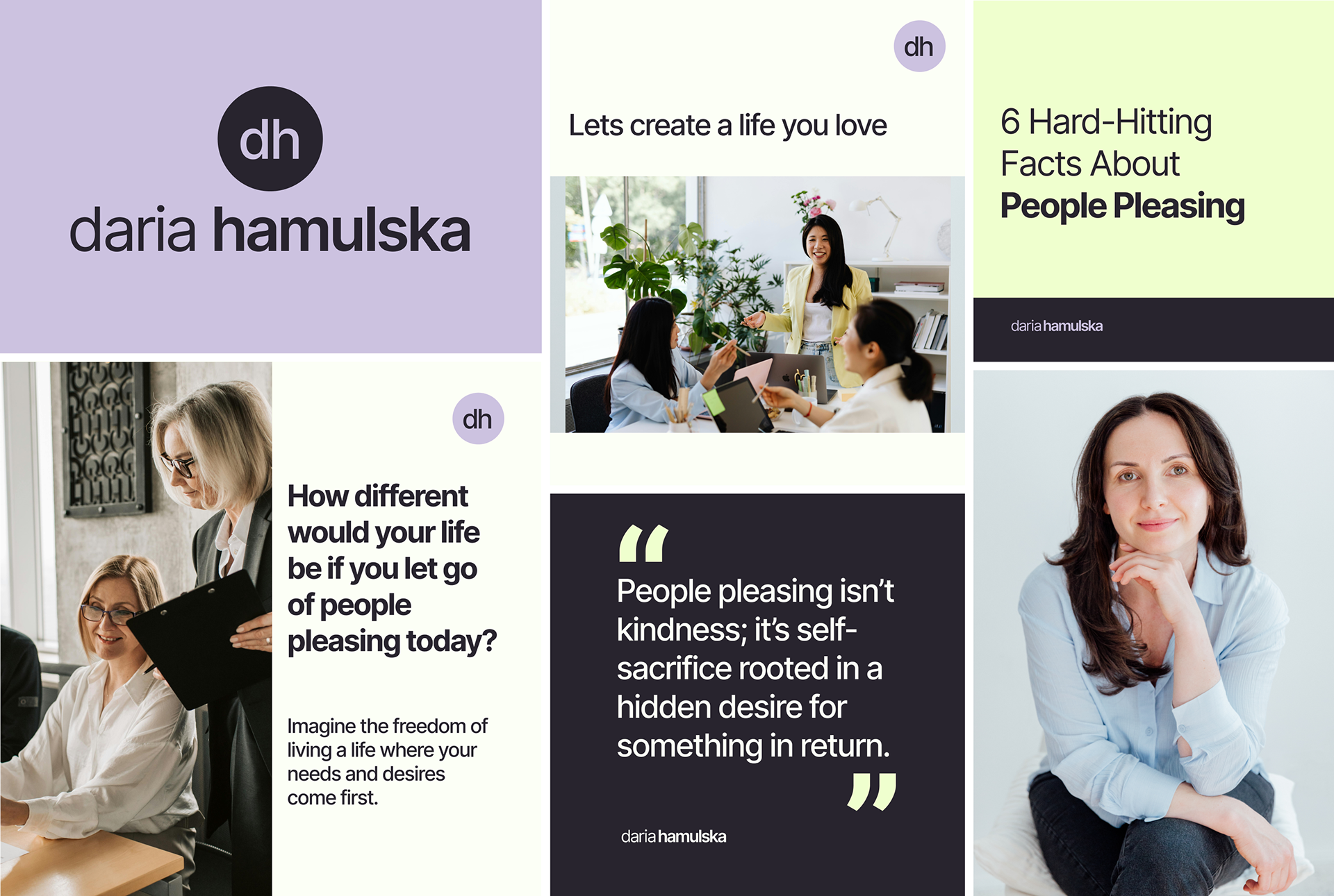 A full brand identity developed for Daria Hamulska, focused on creating a visual and emotional language that supports women through personal transformation.